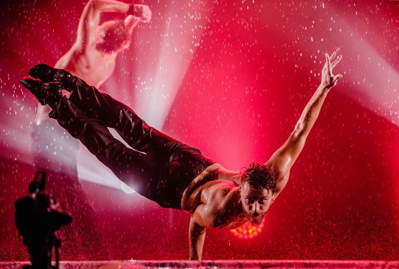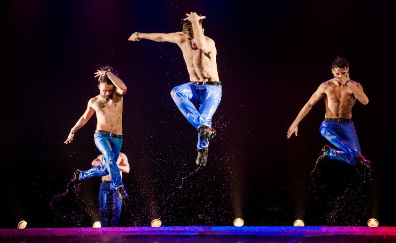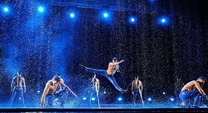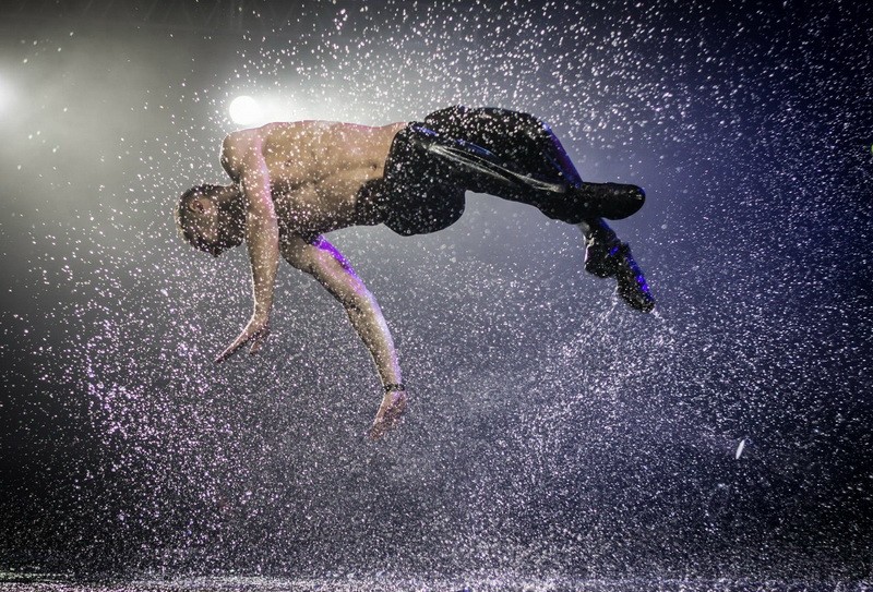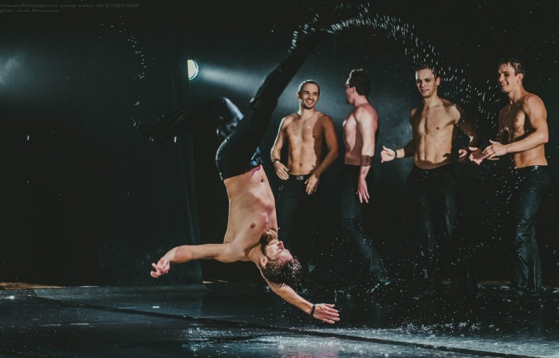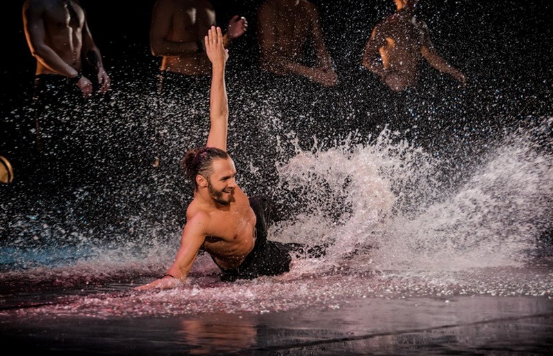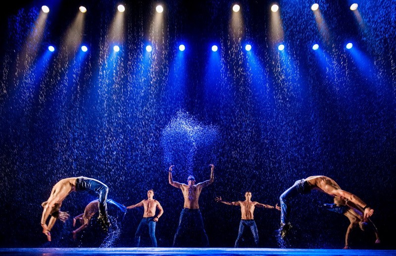 Апофеоз шоу - главный герой вызывает дождь. Этого момента, наверное, ждали все, ведь главная фишка театра - это танцы под дождем. На актеров обрушиваются потоки воды, которые в лучах софитов превращаются в ливень. В сверкающих брызгах акробатические трюки, полеты и невероятно красивые движения артистов выглядят просто волшебно. А капельки воды, стекающие по накачанным торсам танцоров, добавляют изюминку выступлению.