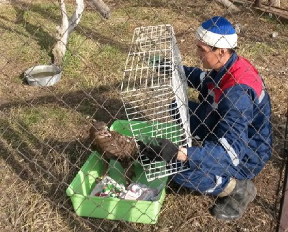 Постепенно пернатый хищник стал привыкать к людям и реву моторов 220-тонных БелАЗов. Однако сотрудники предприятия решили, что это не самая подходящая для него среда обитания. Они сообщили о птице в службу экологии Евразийской Группы (ERG), куда входит предприятие. Те в свою очередь обратились в комитет лесного хозяйства и животного мира Министерства сельского хозяйства, где порекомендовали передать орла в Карагандинский зоопарк. Что и было сделано.