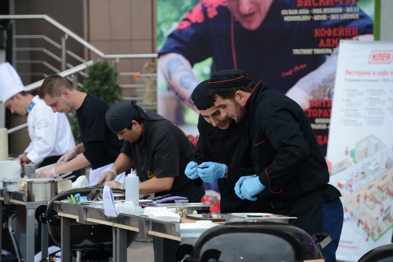 На турнире царила дружеская атмосфера. Соперники обменивались советами, шутили и поддерживали друг друга. Среди участников мы заметили и обладателя титула “Лучший повар страны-2013” Халмурата НУРДИНОВА, который, казалось, совсем не волновался.