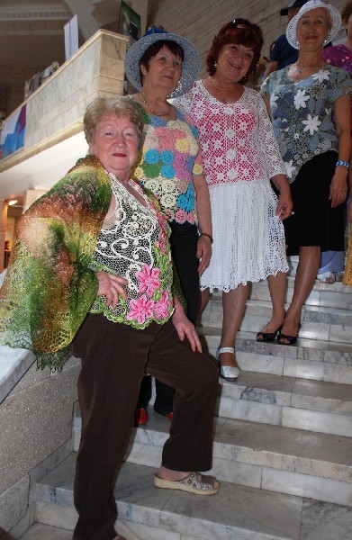 На суд зрителей мастерская “Алексеевские кружева” представила коллекцию весенне-летних нарядов. Модели разных возрастов щеголяли в кружевных платьях и юбках, ажурных кофточках и пестрых накидках, модных шляпках и украшениях. Зрители с восхищением смотрели на вязаную красоту, не веря своим глазам, что все это сделано обычным крючком.