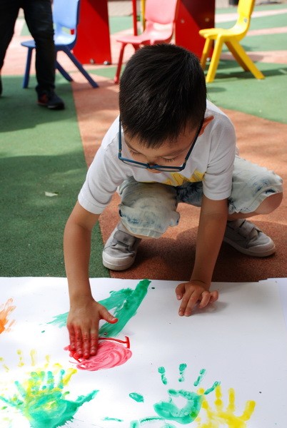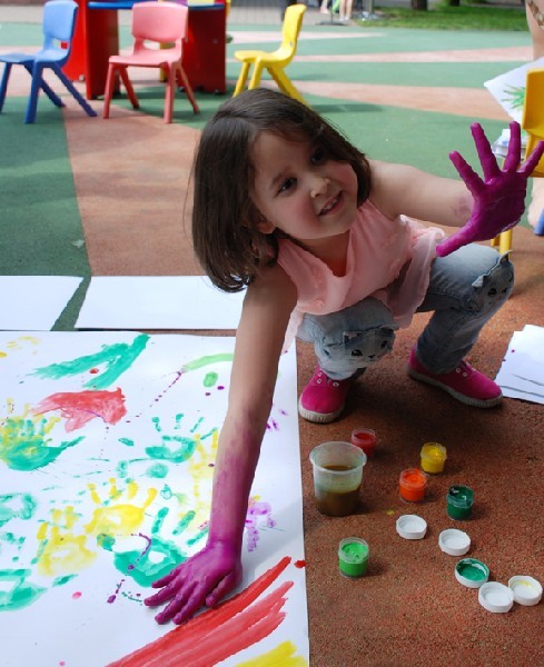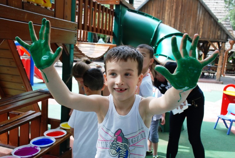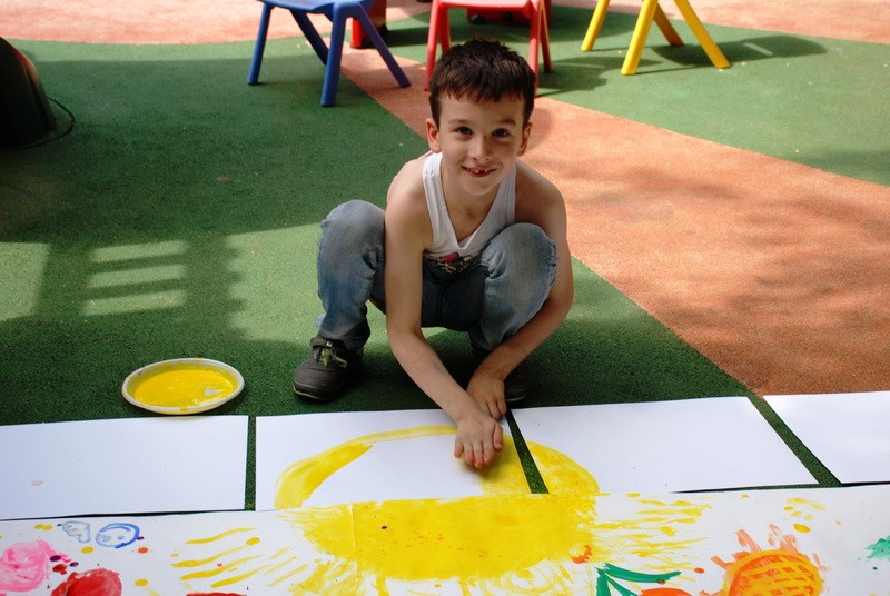 За полчаса детвора создала картину, и, гордые своим творением, юные живописцы отправились отмывать руки.