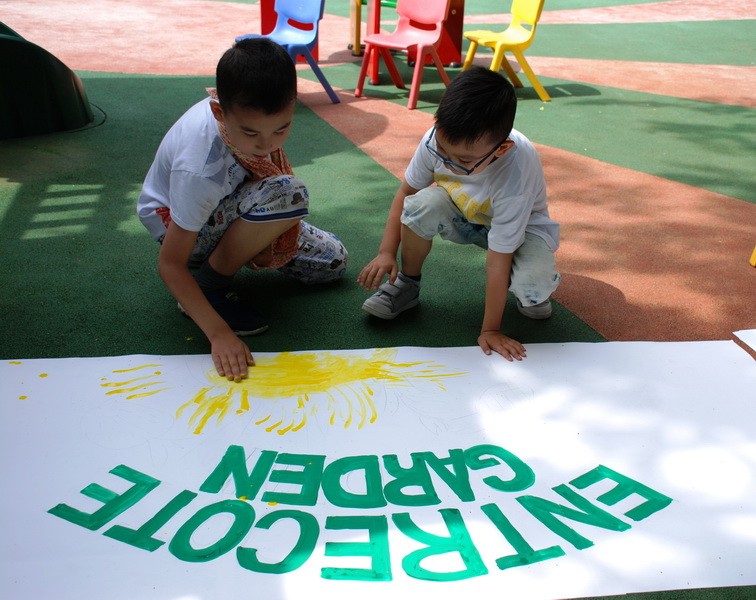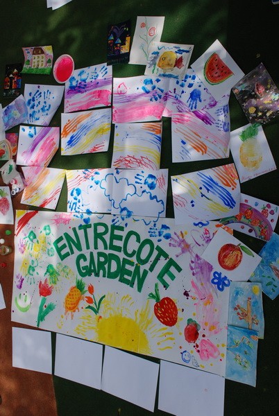 Разложив на асфальте листы ватмана и разместив рядом тарелки с краской, художники стали зазывать детвору.