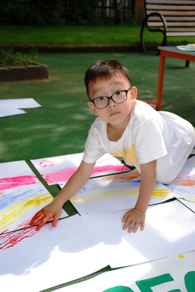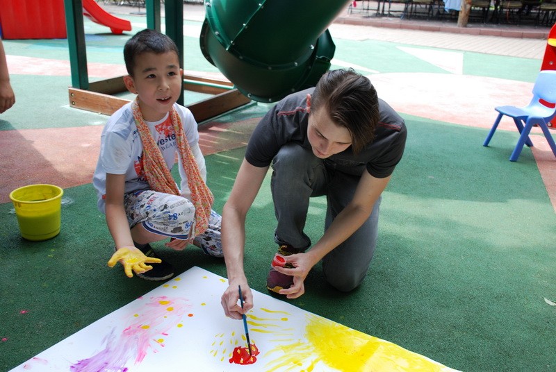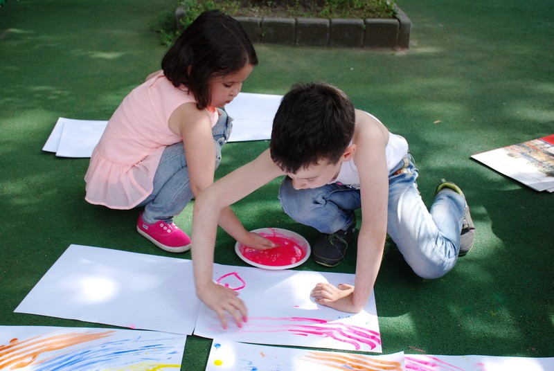 Сначала юные живописцы стеснялись и никак не могли взять в толк, как это - рисовать без кисточек, но потом вошли в раж.