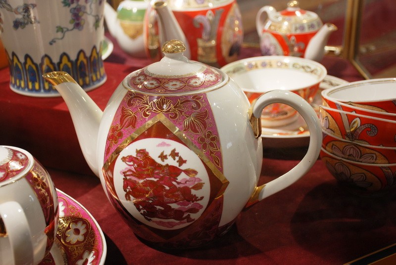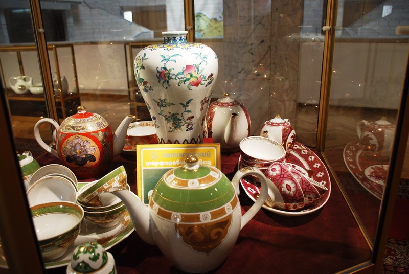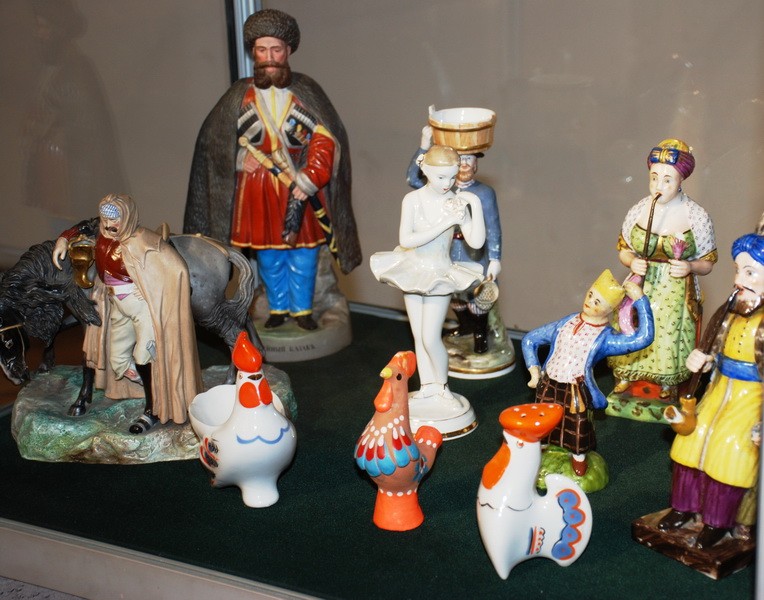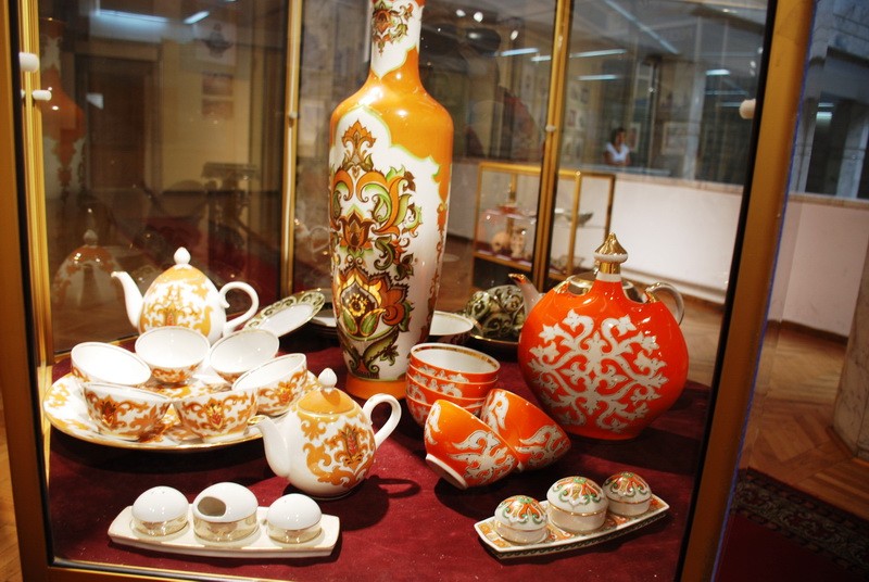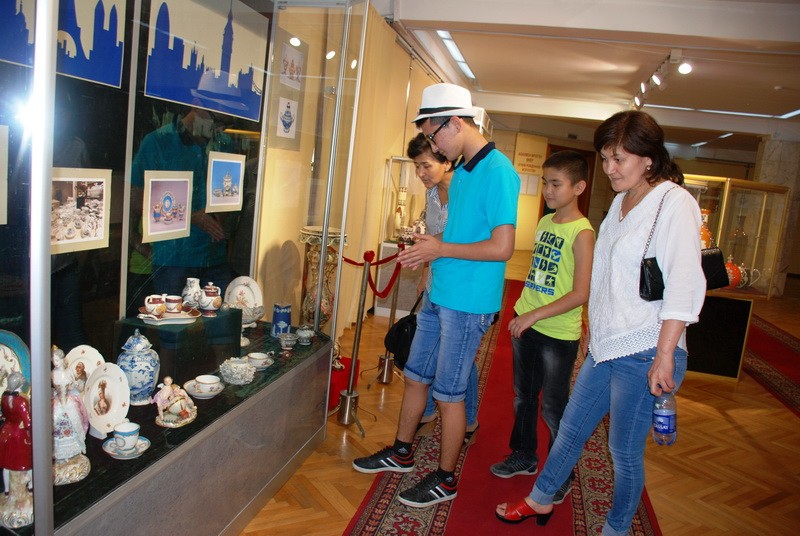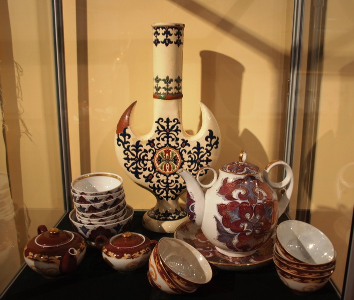 На выставке можно увидеть не только старинные изделия, но и современные. К примеру, чайный сервиз Капшагайского фарфорового завода или изящные кукольные фигурки.