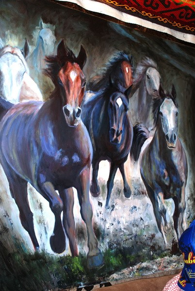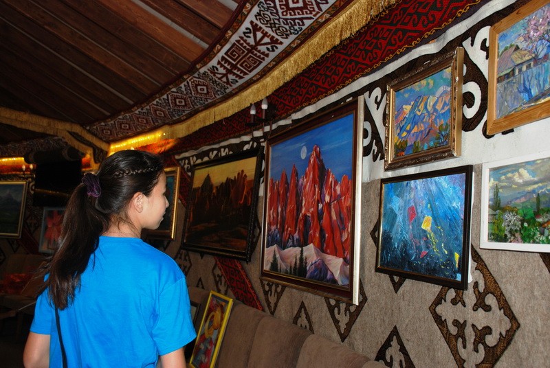 Получив порцию музыкального драйва, зрители окунулись в мир живописи. В самой большой юрте мира “Ак Аул”, занесенной в Книгу рекордов Гиннесса, свои творения на суд публики представили лучшие