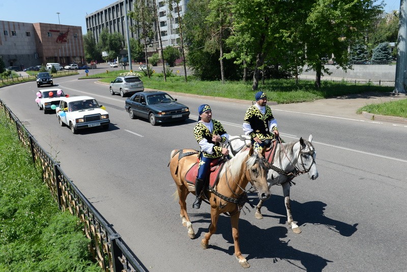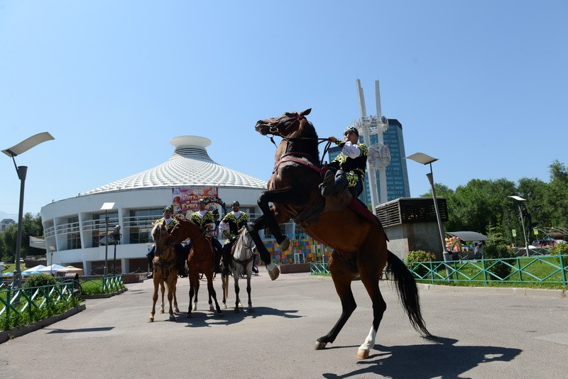 11 июля артисты Алматинского цирка устроили шоу прямо под открытым небом. Необычная кавалькада, посвященная 1000-летию южной столицы, прошла по улицам города.