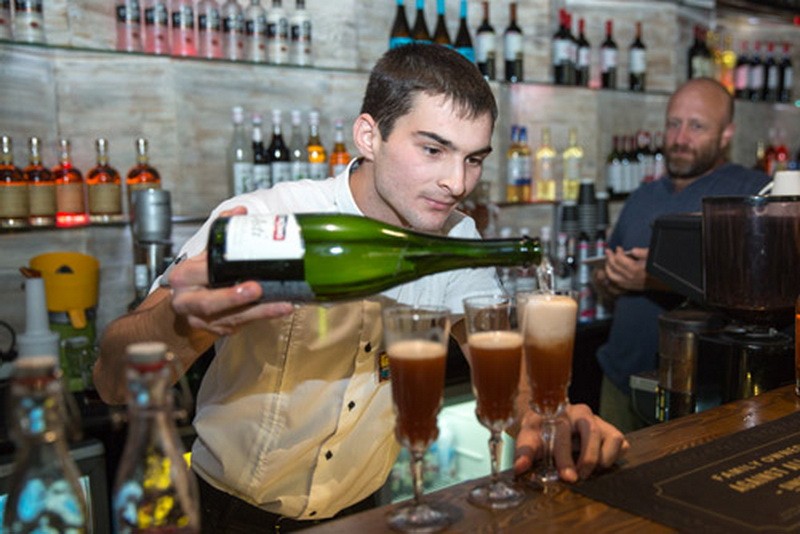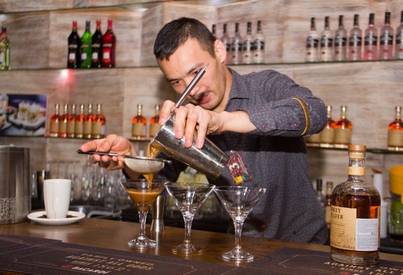 - Мне недавно сделали операцию на лимфоузлы, и я не планировал участвовать, - признается Куаныш. - В последний момент передумал и отпросился у врачей. Свой коктейль я придумал только что, он довольно крепкий, мужской. Люблю творить и экспериментировать, а конкурс - лучший повод для этого.
