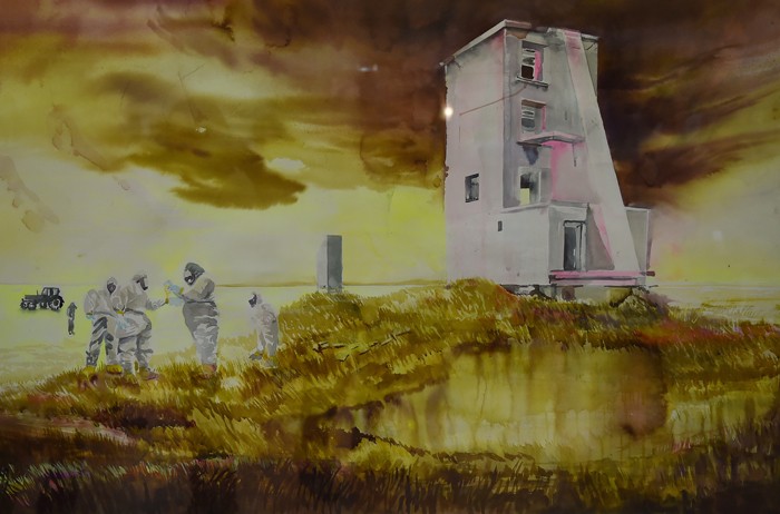 Экспозиция представляет собой серию акварельных, чернильных и акриловых работ, посвященных разрушительным последствиям техногенных катастроф.