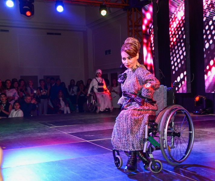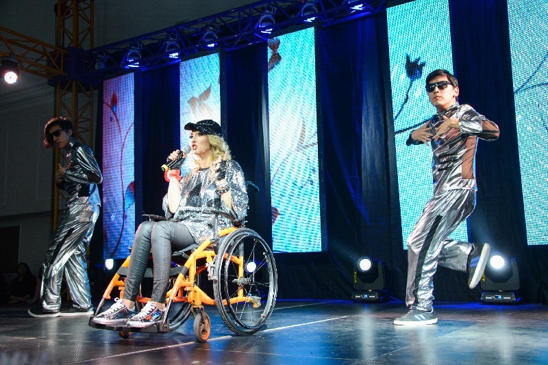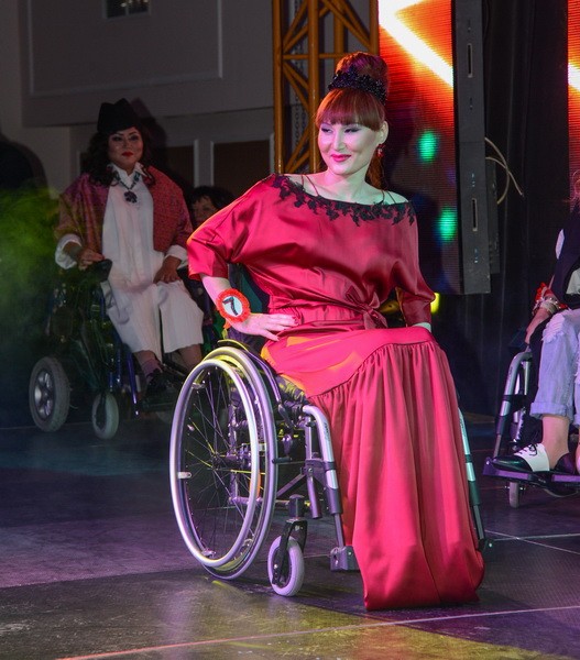 Добавил жару и выход девушек в дизайнерских нарядах. Под ритмичную музыку конкурсантки появились на сцене, и, думаю, зрители в этот момент не замечали, что они в инвалидных колясках. Девушки великолепно вжились в образ и дефилировали по сцене как настоящие модели.