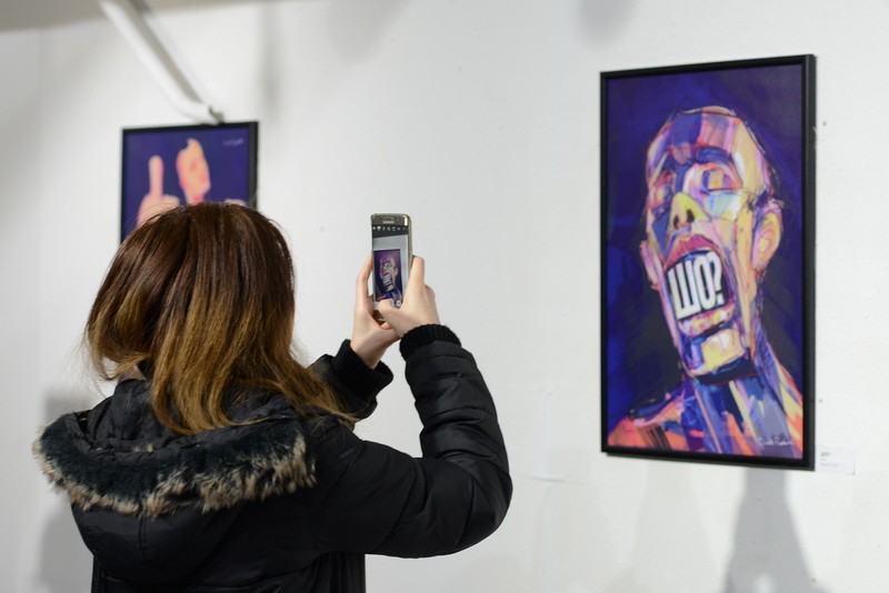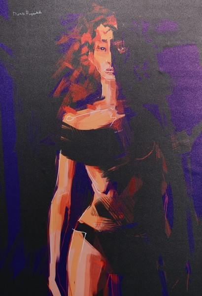 - Мне нравится работать в графическом направлении “экспрессивный гранж”, - продолжает художник. - Данный прием заключается в изображении предметов или людей в виде собирательной формы. При создании картины краска разбрызгивается по силуэту картины наотмашь. Сложность в том, что здесь нет права на ошибку, так как любой промах может полностью изменить картину.