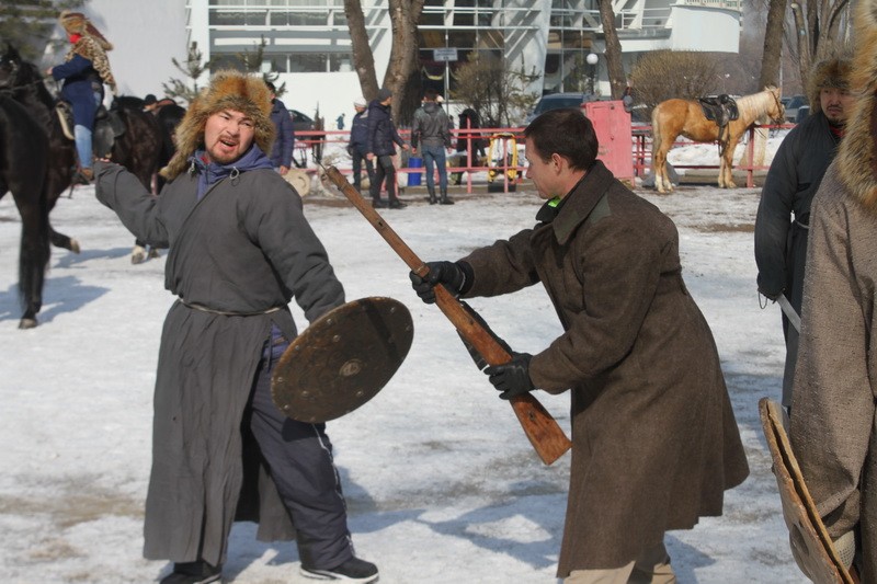 К слову, на кастинге режиссер отобрал нескольких алматинских актеров, причем один из них сыграет джунгарского хана Анхудая. Имена пока не разглашаются. Зато журналисты первыми увидели каскадерские трюки, которые будут показаны в фильме.