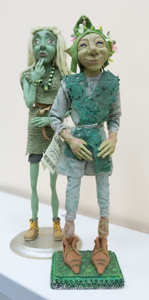 - Эта зеленая девчушка мне явилась во сне, - рассказывает мастер. - Я долго вынашивала ее образ, а когда работа была завершена, пришло название “Зеленая тоска”. Причем в этот момент у меня не было ни депрессии, ни плохого настроения. А перед самой выставкой родился образ дружка для нее.