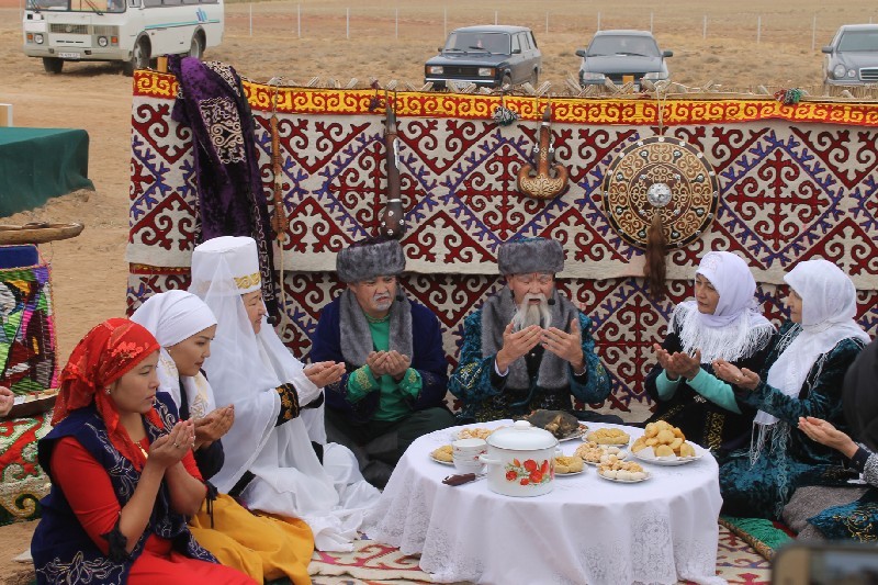 В этноауле гости посмотрели инсценированные казахские обычаи, отведали шубат, кумыс и горячие баурсаки.