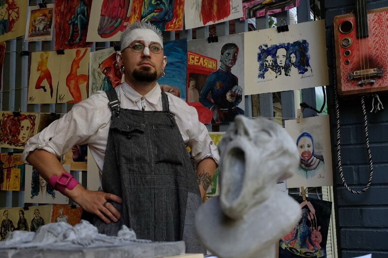 Конечно, это немного походит на филиал дурдома: на входе строгий контролер под пристальным взглядом Ленина в медицинской маске измеряет температуру, как только совершается покупка, все аплодируют и кричат браво, а к продаже предложены порой очень странные вещи. Но народ, соскучившийся по событиям, идет бодрым косяком - не столько купить, сколько поговорить с артистами.