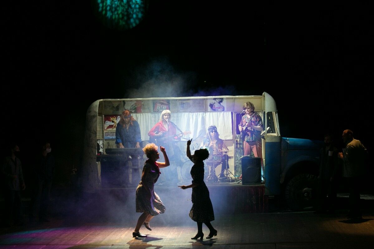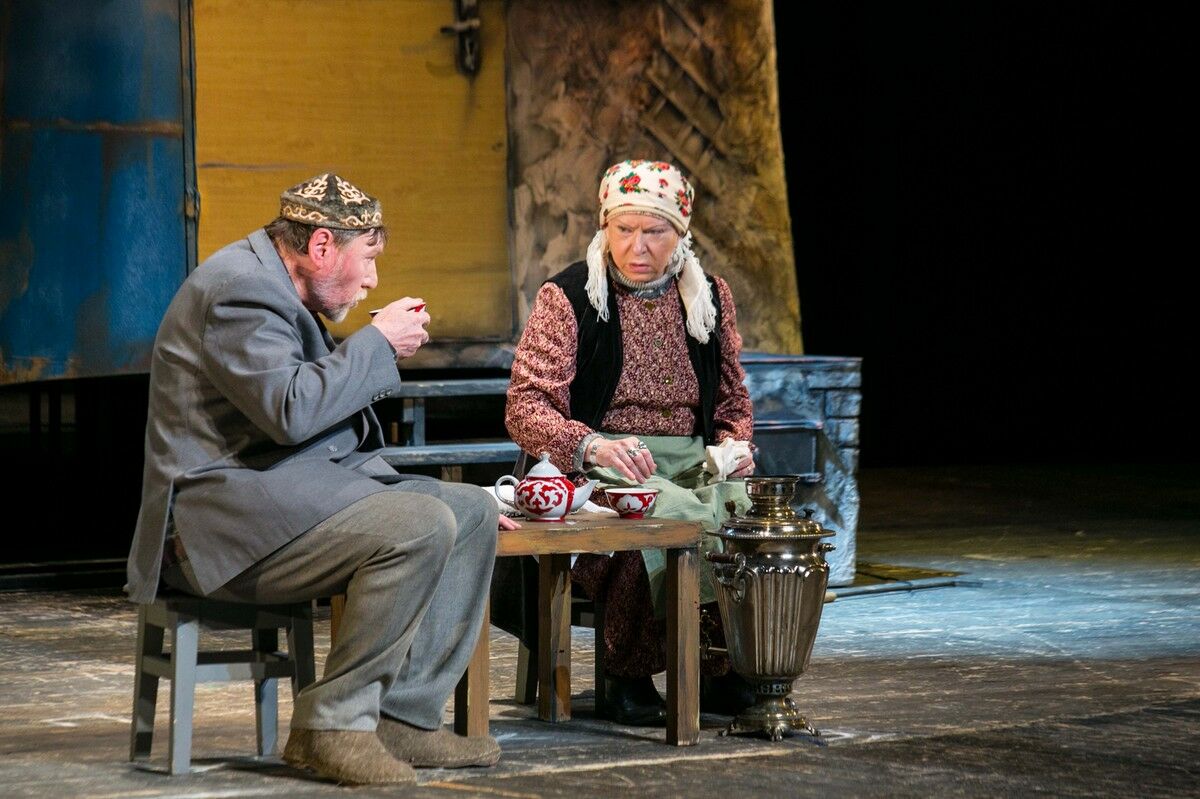 Колоритные истории из жизни жителей аула превратились в гротеск. Почему-то актеры пытаются играть казахских персонажей с тем нелепым акцентом, мимикой и интонациями, как у стендаперов из “Тамаши”. Возникает вопрос. Почему Гамлет не говорит: “Быть или не быть, уот в чем вопрос”? И, возвращаясь к драматургии “про нас”, можно вспомнить “Джут”, поставленный Рубеном АНДРИАСЯНОМ, где тоже были национальные персонажи, но играли они историю, а не акценты и внешние штампы. И это не вина актеров. Их только жалко - неслаженность ансамбля плюс отсутствие сюжетного стержня и динамики накладывались на чудовищные ляпы - ох, простите, режиссерские придумки. Например, дело происходит примерно в 1975 году (как маркеры времени - брюки клеш, промотка кассет карандашом и т. д.).