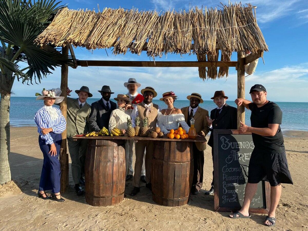 Кино вообще творит чудеса. Так, в карантинные суровые времена между локдаунами и послаблениями режима группа умудрилась снять больше половины материала. Даже сцены в Буэнос-Айресе. Это вообще оказалось самой простой задачей, как по секрету рассказал Канагат: на побережье родного Капшагая воткнули несколько искусственных пальм, белоснежный пароход дорисуют уже на компьютере, и зритель увидит в кадре другую страну и иной век.