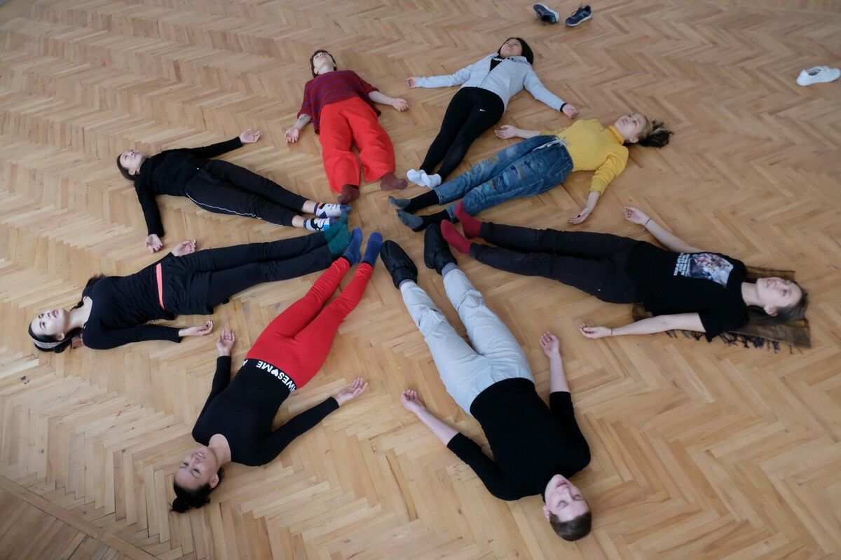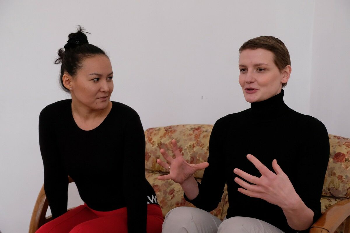 Называется это объединение танцлаборатория “Жолда”. В зале регулярно собирается с десяток женщин разного возраста - все те, кто однажды откликнулся на странный пост в соцсетях и пришел сюда искать что-то новое и необычное. Разминка, практика, упражнения. Возглавляют это движение профессиональная танцовщица Анастасия АЛДАБЕРГЕНОВА и журналист, фотограф Жанна ТУЛЕНДЫ. Но руководителями они себя не называют, говорят, что здесь все равны, что все партнеры и ищут свои движения - то, что подсказывает душа.