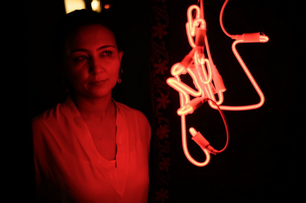 На выставке “Как меня звали?” в галерее Aspan Gallery много сакрального: мистическая практика чилла, число “сорок”, вписанное почти во все объекты, и обращение к корням, к собственной истории. В качестве объектов - сорок чачванов, сеток, сотканных из конского волоса для прикрытия женского лица при ношении паранджи. Это старинные предметы, которые художница собирала всю жизнь, и на выставке они развешаны так, что можно любоваться ими, а можно через них посмотреть на мир. Каждый объект выступает как свидетель жизни своей бывшей хозяйки - на сегодняшний момент ремесло плетения подобных сеток утрачено. Неоновые объекты, спрятанные за чачванами, - это имена, написанные на арабице, кириллице и латинице. Есть еще сорок обложек женских журналов, показывающих, какой должна быть женщина свободного Узбекистана. По сути, это маленькое исследование, музей собственных впечатлений. Центральную видеоинсталляцию этой серии уже купила зарубежная галерея, а помогли осуществить сделку казахстанские галеристы.