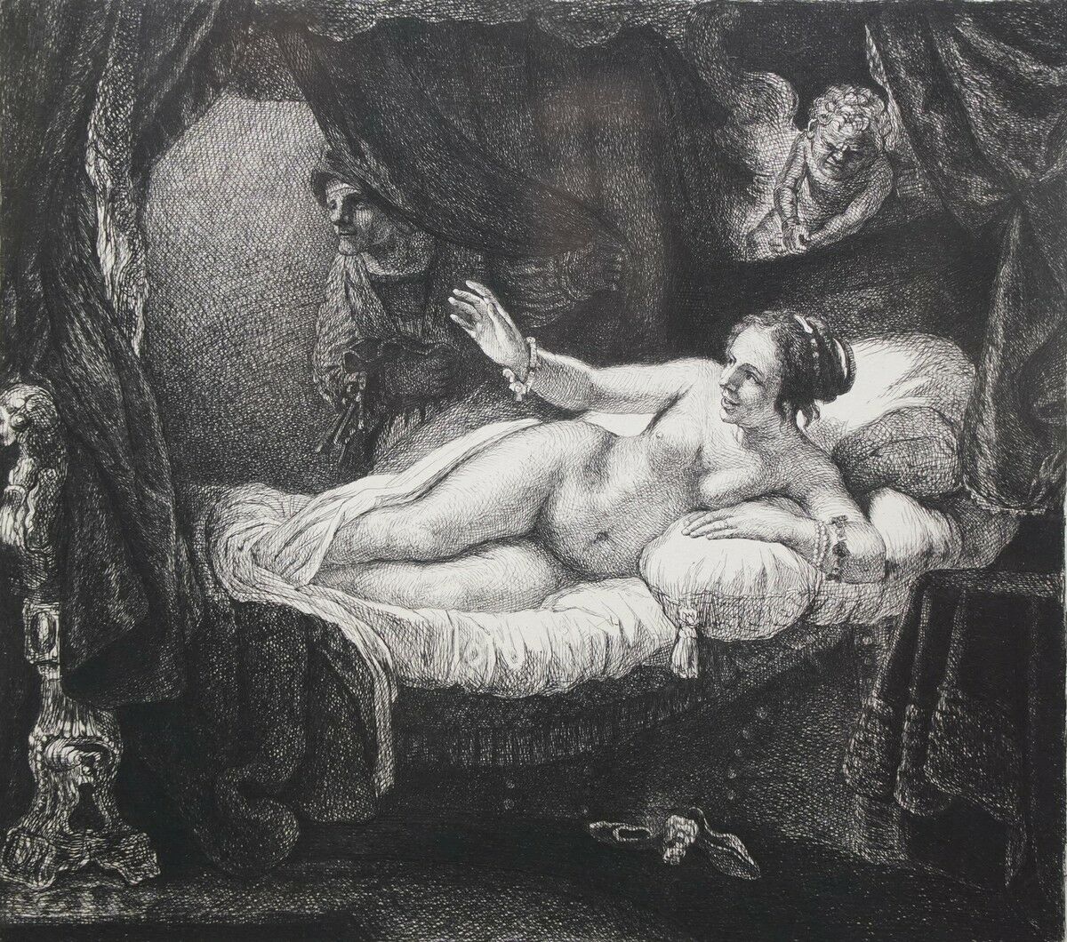 Интересная деталь: офорт существовал и как отдельный жанр графики, и как способ тиражирования. Например, в этом собрании очень много офортов, сделанных с самых популярных картин Рембранта ван РЕЙНА. Сам он не делал офорты со своих уже написанных картин, за него это делали другие уже после его смерти. Но художник любил офорт как отдельный жанр. Например, офорт “Нищий” не имеет версии “холст - масло”, и искусствоведы полагают, что эту скромную работу сделал сам мастер.