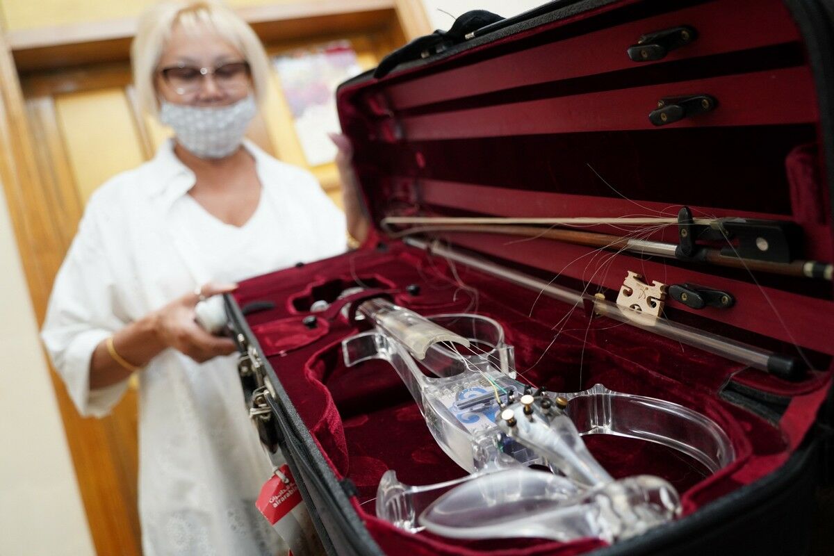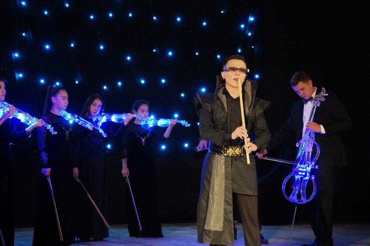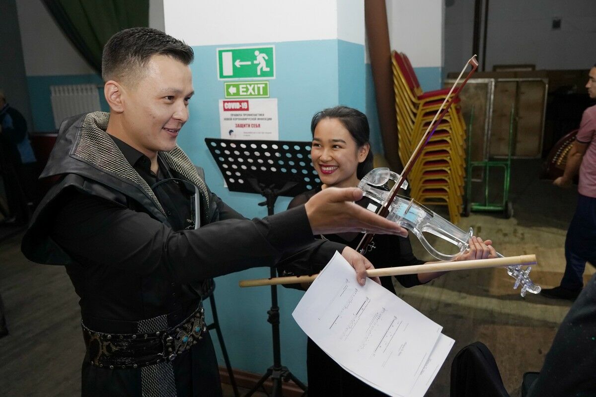 Скрипач, дирижер и организатор шоу Марат БИСЕНГАЛИЕВ переживал, что в нашем оркестре мужчин модельной внешности больше, чем дам, и придирчиво отбирал участников рекламного видео. Они записывались на фоне имитации звездного неба с новомодными светящимися электроинструментами. Партию сабызгы исполнил в очках виртуальной реальности директор филармонии Серик НУРМОЛДАЕВ. Впрочем, само произведение будет более впечатляющим, и все из-за требований… соблюдать дистанцию и не собираться большими группами. Оркестру особенно сложно выполнять такие нормативы, но Бисенгалиев нашел выход.