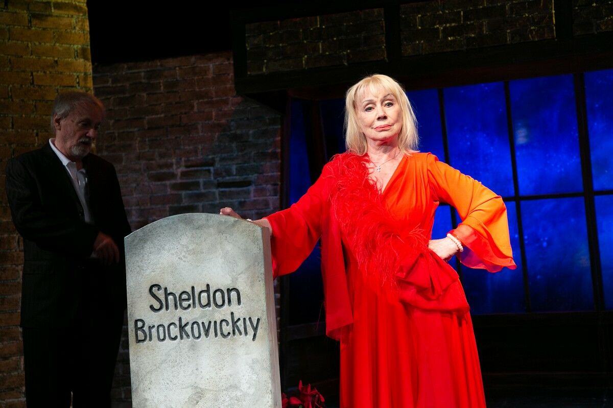 Шесть новелл похожи на контрастный душ, когда зал то хохочет от души, потому что рядом с вечностью страсти терзают ничуть не меньше, чем в юности. То вдруг, поперхнувшись смехом, мы глотаем слезы. Так происходит и когда героиня приводит к могилке мужа нового жениха, и когда пожилая оторва учит правильную даму, как заниматься сексом, и когда молодой прохвост обводит вокруг пальца стариков. За окном декораций синяя вечность, то ли космос, то ли портал в неизвестное. Вся старая гвардия в одном вечере: Геннадий БАЛАЕВ, Татьяна БАНЧЕНКО, Нина ЖМЕРЕНЕЦКАЯ… из 13 актеров 11 - мастодонты легендарной сцены. Их должно было быть больше. Но незадолго до премьеры ушел из жизни Юрий Борисович ПОМЕРАНЦЕВ. У него, кстати, была новелла с неимоверно сложным сюжетом: встреча еврея, прошедшего через концлагерь, и его мучителя-надсмотрщика. Когда мастера не стало, режиссер спектакля принял решение: эта миниатюра останется в спектакле, более того, она будет данью памяти актеру. Перед ее началом Дмитрий СКИРТА объявляет об этом зрителям, заверяя, что с партнером просто прочитает текст. Но “просто” не получается. Скирта невольно копирует манеру Померанцева, который словно проступает наружу, прорывается жестами, мимикой.