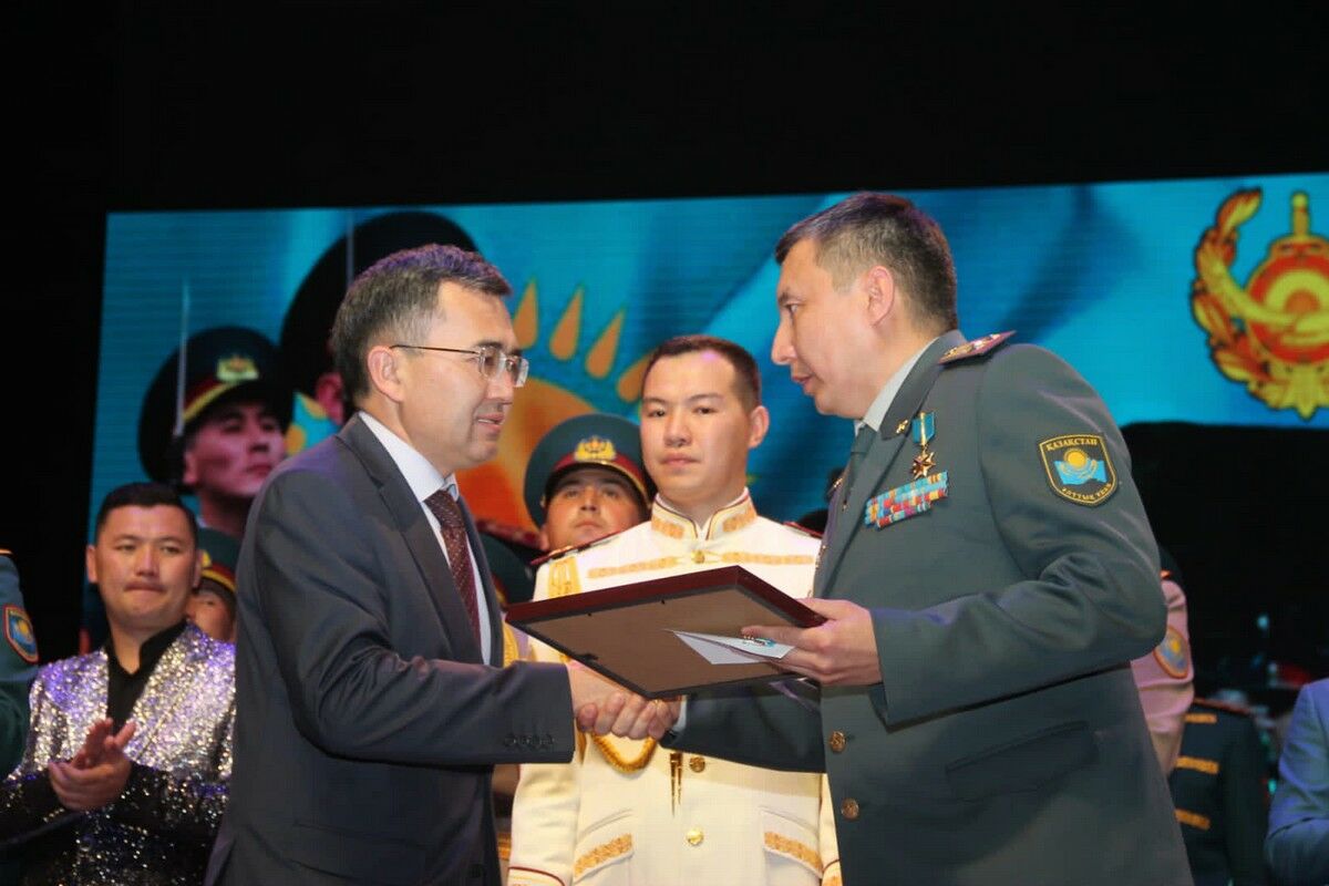 Артисты Нацгвардии моментально нашли путь к сердцам зрителей, а их собралось более 700 человек. Оказалось, что живое выступление лучше всего пробуждает патриотизм и гордость за таких талантливых казахстанцев. Но не песней единой славен военный человек. Так что в этот вечер публика увидела показательное дефиле роты почетного караула, которая демонстрировала синхронность действий под песню “Адай”. А зажигательные танцы гвардейцев вызвали настоящие овации в зале. Артисты в погонах заставили публику и прослезиться - в тот момент, когда исполняли песню о Национальной гвардии. Ее написали военнослужащие-срочники столичной бригады. Завершилось выступление исполнением гимна Национальной гвардии “Елдің қорғаны”.