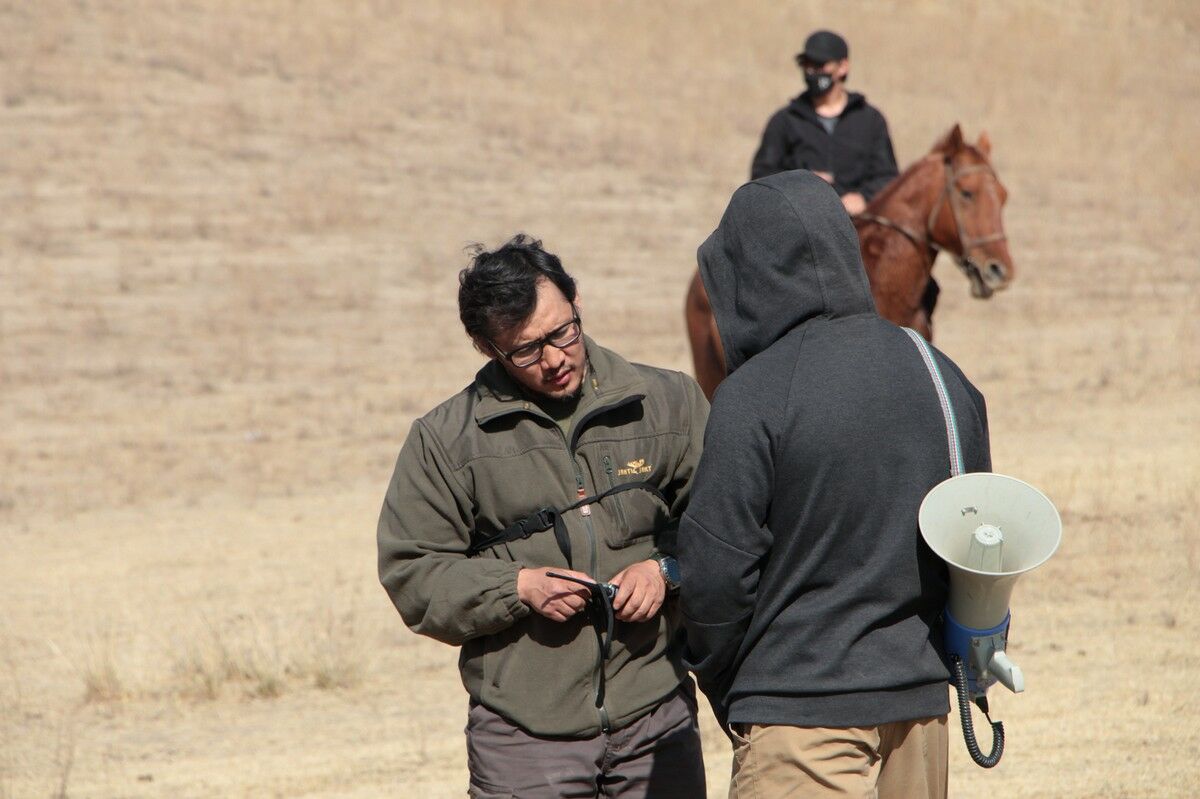 Всадники отлично входят в роль. Или это все мужчины так любят поиграть в войнушку? Они и лица делают суровые, и вполне аутентично отдыхают в паузах, лежа в тени своих коней. Даже режиссер больше похож на чабана: пыльная куртка, сидушка-каремат на резинке, огромные резиновые сапоги.