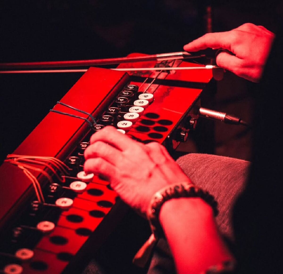 Как и все современники, Кошевник полез в интернет за подсказкой. Информации было немного, да и та в большей степени на японском. Попалось видео, где на тайсёгото пробуют играть смычком. И тут как лампочка зажглась. Началась новая жизнь инструмента в проекте Николая, который он назвал “Лугнан”. Обычно играли на музыкальном раритете с помощью медиатора, Николай же приспособил к нему смычок, изменил механику, струны другие подобрал и даже под кнопки приладил мягкие подкладки. Появилась в звучании какая-то восточность. Николай услышал в нем звуки казахских кобыза и домбры, узбекского гиджака и арабского уда. Повеяло каким-то шаманизмом. Повалили идеи записей и выступлений. Музыкант даже подружил своего “франкенштейна” с современной колонкой.