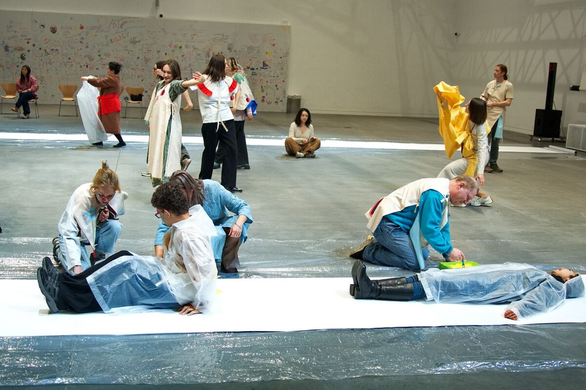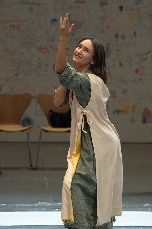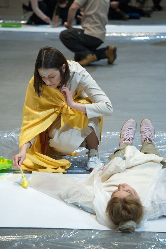 В этот момент на участниках стали появляться куски ткани с элементами спасенного сграффито, сцену от зрителей отделили листы бумаги, на которых желающие могли рисовать. Кто-то начинал танцевать, вытаскивали в центр зрителей… А потом стали мечтать о будущем. Каким оно будет, не мог предположить никто, но к этому моменту на душе всем стало светло и казалось, что впереди не может быть ничего плохого…