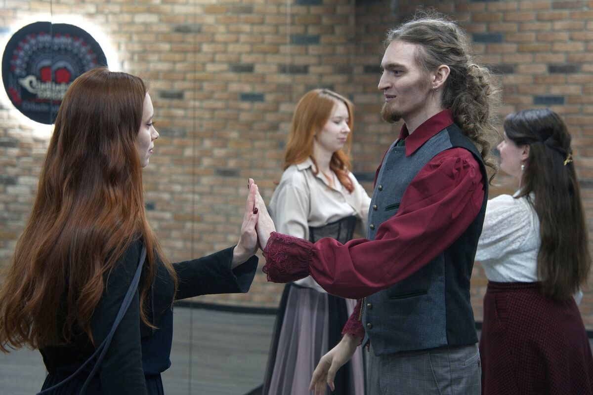 Несмотря на мороз, в студии на репетицию перед балом собираются люди - пока еще в скромных нарядах. Для бала, как для косплея, многие приготовят что-то особенное. Например, девушки мечтательно закатывают глаза, когда речь заходит о юбках с кринолином. Хотя уже сейчас все похожи на сказочных персонажей: мужчины в кружевах, дамы в декоративных корсетах и замысловатых юбках. Конечно, бал будет не просто средневековым, а с оттенком колдовства и фэнтези.