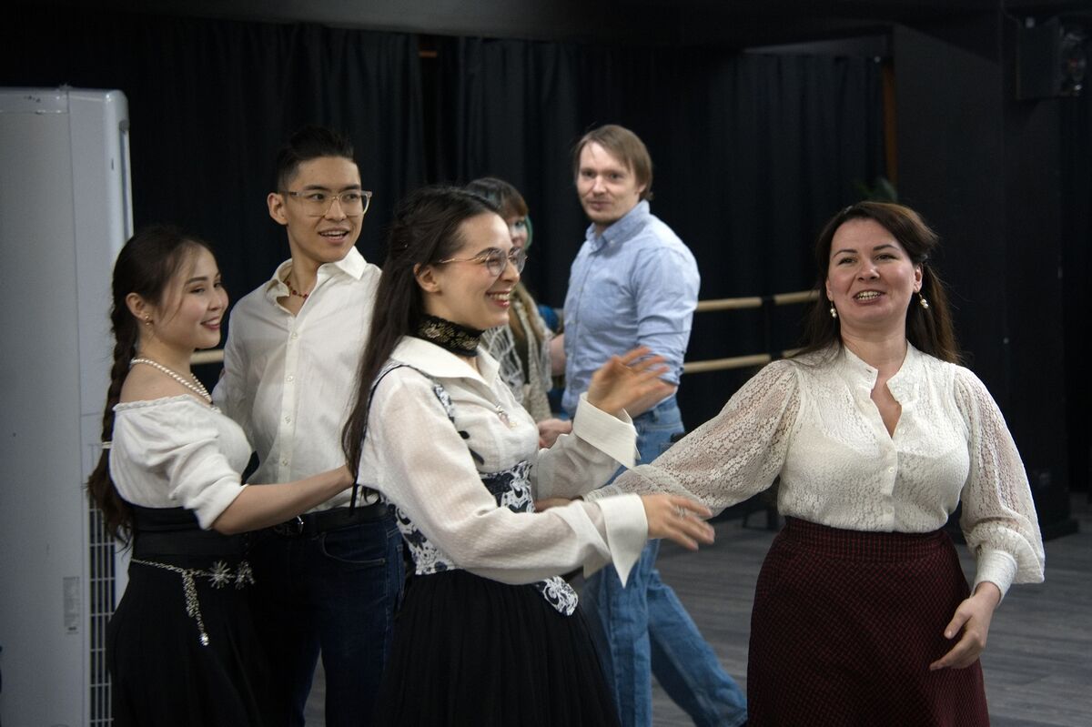 На репетиции собравшиеся совершенно серьезно выстраиваются в линии, обсуждают, какой танец будут исполнять, какие фигуры и в каком порядке использовать. Потом включают музыку, и буквально с первых тактов происходит волшебство. Лица начинают светиться улыбками и счастьем. Даже если участники путаются, даже если не все получается гладко.