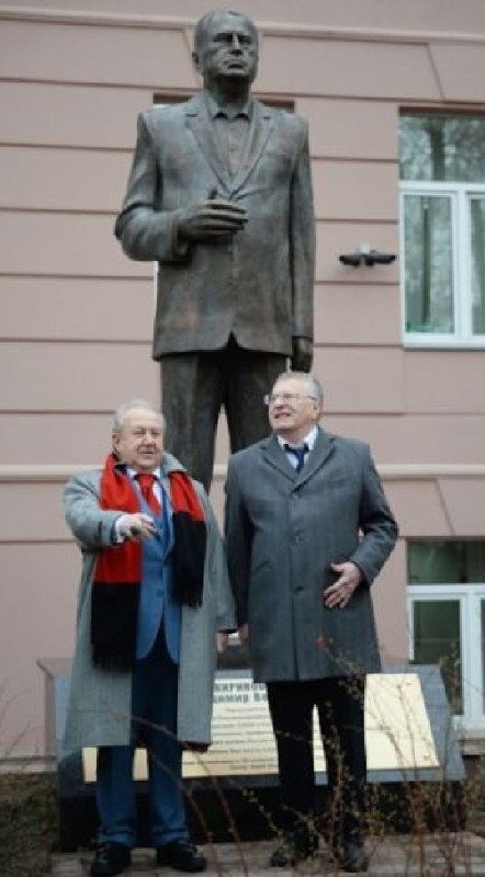В Москве открыли трехметровый бронзовый памятник лидеру ЛДПР Владимиру ЖИРИНОВСКОМУ (на снимке - справа), изготовленный к 70-летию политика скульптором Зурабом ЦЕРЕТЕЛИ (на снимке - слева).