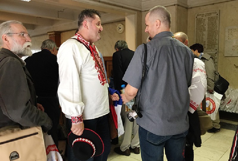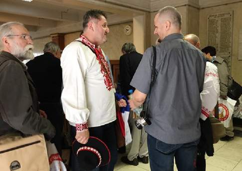 С раннего утра к третьему подъезду Российской государственной библиотеки (бывшая библиотека им. В. И. Ленина), в конференц-зале которой проходило пленарное заседание съезда, начали подтягиваться делегаты. Некоторые представители славянских государств щеголяли в национальных костюмах, заметно выделяясь на фоне остальных, одетых в пиджаки и футболки.