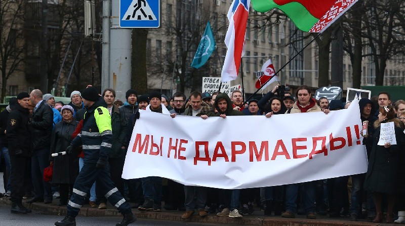 В марте нынешнего года по Белоруссии прокатилась волна протестов против “декрета о тунеядцах”, по которому более 470 тыс. белорусов (каждый 10-й трудоспособный) получили предписания уплатить в госбюджет по $185-200, что для Белоруссии является достаточно значительной суммой. Непосредственной причиной взрыва недовольства стало получение извещения о необходимости уплатить “налог на тунеядцев” людьми, у которых порой годами не получается устроиться на постоянную работу. Особенно заметна эта проблема в небольших белорусских городках. Здесь встречаются те, кто официально трудоустроен на небольших предприятиях, однако работает по 1-2 дня в неделю и получает минимальные зарплаты. Но их и не увольняют - исполкомы запрещают директорам сокращать штат, чтобы не портить статистику.