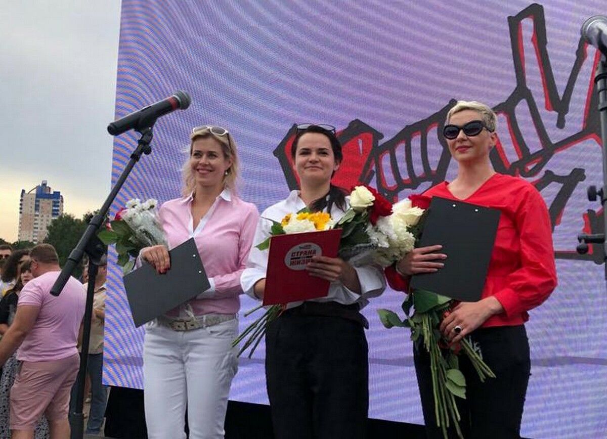 На днях избирательные штабы Цепкало и Бабарико заявили, что будут поддерживать Тихановскую. На воскресном пикете в Минске выступали и две другие женщины, ставшие символом борьбы на этих президентских выборах, - глава штаба Бабарико Мария КОЛЕСНИКОВА и супруга Валерия Цепкало Вероника.