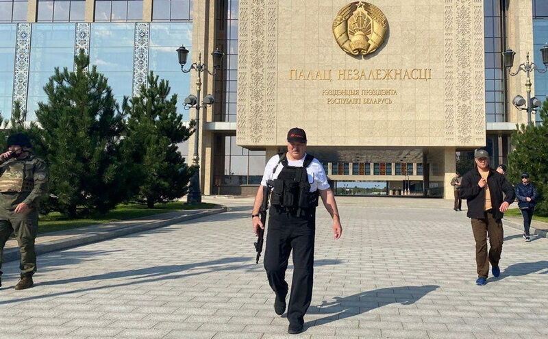 Пресс-секретарь Лукашенко Наталья ЭЙСМОНТ на вопрос РИА Новостей о том, где сегодня находился Лукашенко, прислала в ответ его фото с автоматом на фоне Дворца независимости. Впрочем, как отметили многие, фото было сделано при солнечном свете, хотя в Минске в воскресенье было пасмурно.