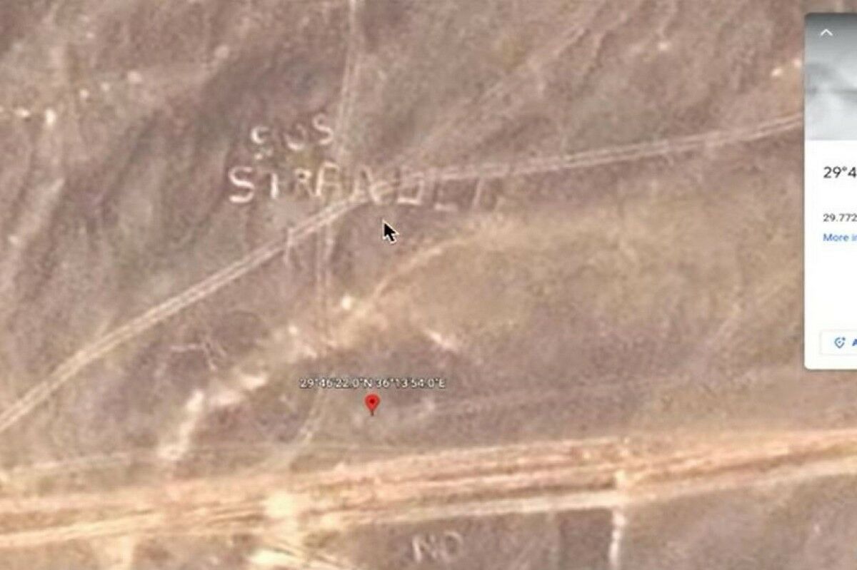 Мужчина исследовал отдаленную пустыню, которая находится на карте южнее Иордании. Там он обнаружил сигнал бедствия, вычерченный на песке латинскими буквами. Надпись гласила: SOS Stranded (“Нужна помощь. Застрял”). Ниже можно разглядеть еще одно слово No (“Нет”).
