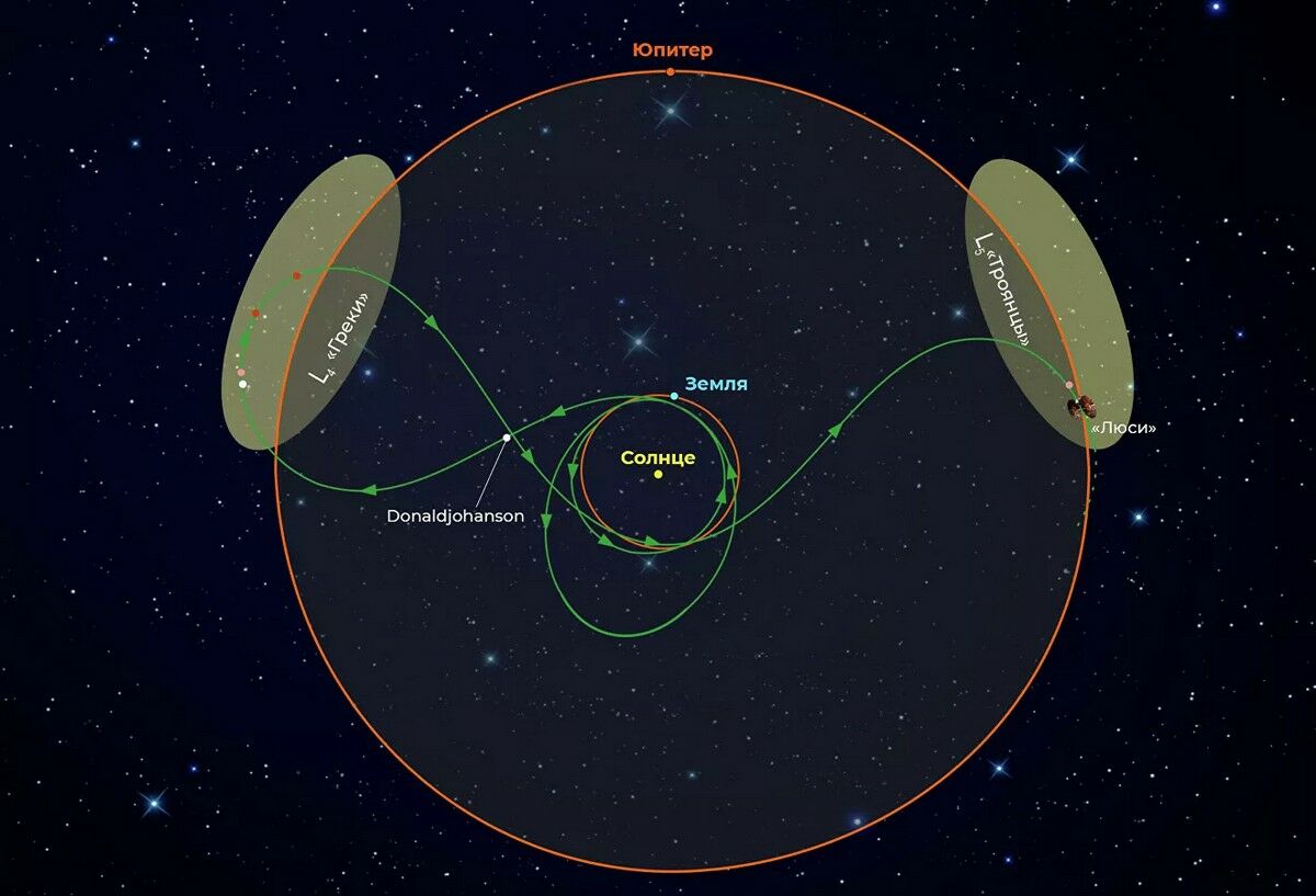 А миссия “Люси” названа в честь первого австралопитека, древнейшего предка человека, найденного в 1974 году в Эфиопии французско-американской экспедицией во главе с ученым из США Дональдом ДЖОХАНСОНОМ. Тут двойной смысл. С одной стороны, космический аппарат направляется к “троянцам” Юпитера как к древнейшим космическим “ископаемым остаткам”, свидетельствующим о самом раннем этапе становления Солнечной системы. А с другой - по пути, в главном поясе астероидов между орбитами Марса и Юпитера, “Люси” пролетит мимо астероида 52246 Donaldjohanson, названного в честь американского антрополога.