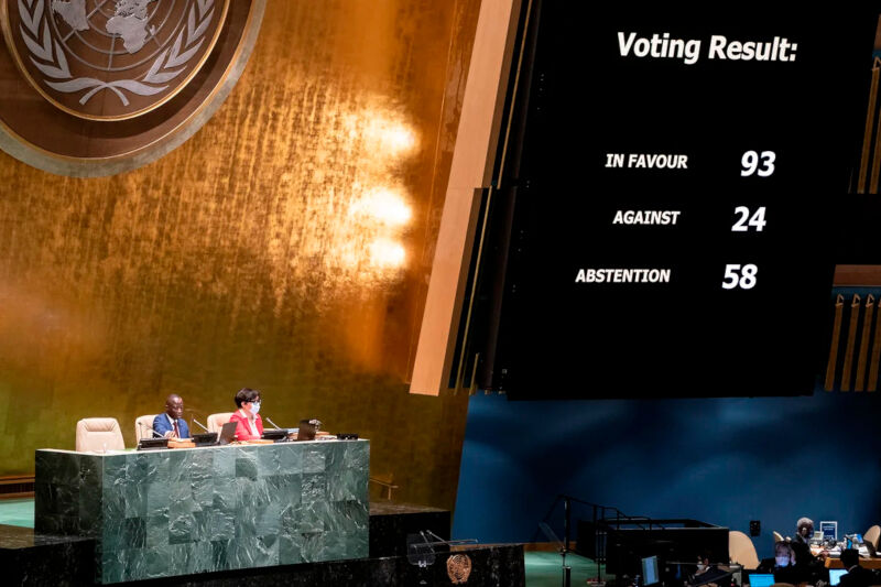 Тех, кто выступил за предложенный документ, оказалось значительно меньше, чем по двум резолюциям по Украине, принятым Генассамблеей в марте. Тогда за решения, требующие немедленного прекращения огня в Украине, защиту гражданского населения и вывод всех российских войск проголосовали более 140 государств.