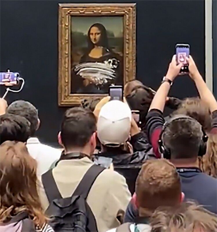 Молодой человек попытался измазать картину “Мона Лиза” работы Леонардо да Винчи тортом.