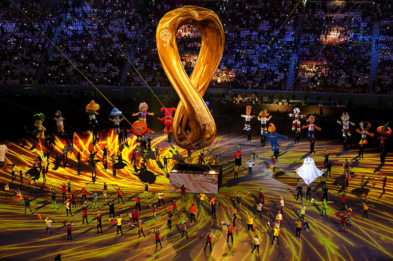 Церемония прошла 20 ноября на 60-тысячном стадионе "Аль Байт" в городе Аль-Хор перед матчем группы А Катар - Эквадор. Во время 50-минутного шоу официальный гимн турнира Hayya Hayya (Better Together) исполнили Trinidad Cardona (США), Davido (Нигерия) и AISHA (Катар). Хедлайнером выступил участник популярной K-pop-группы BTS Чон ДЖОНГУК.