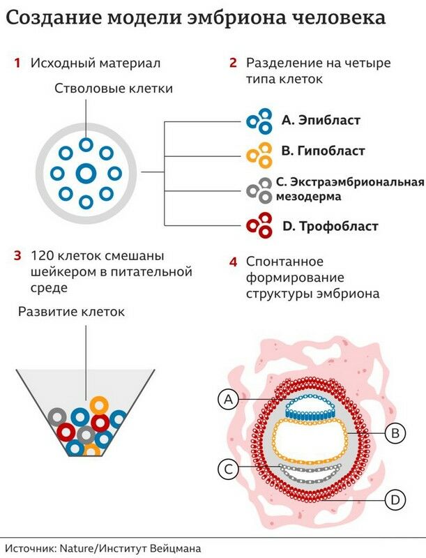 По словам ученых, “модель эмбриона”, выращенная ими из стволовых клеток, выглядит абсолютно хрестоматийно - ровно так, как здоровый человеческий зародыш спустя две недели после зачатия.