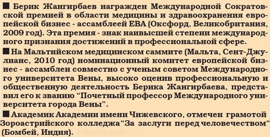 Практике лечения Берика Жангирбаева 26 лет. За эти годы доктор вылечил десятки тысяч людей от заболеваний, считающихся неизлечимыми. С течением времени его удивительные способности только совершенствуются. С каждым разом ему удается все быстрее побеждать сложные заболевания.