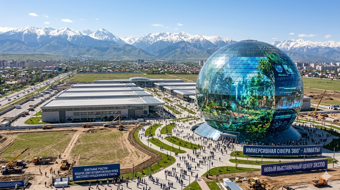 В Алматы планируют построить новый выставочный центр ЭКСПО и здание в виде сферы с эффектом полного погружения в визуальный контент.