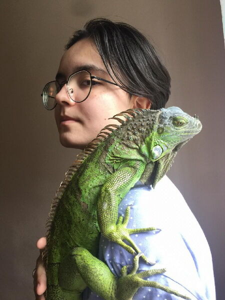 - Это как в анекдоте про хомячка, который вырастает в медведя, - смеется Александра УТЕПОВА. - Сначала она хотела просто ящерку, но они кушают мух и всяких насекомых, этого я в доме потерпеть не могла, поэтому выбирали травоядного питомца. В итоге нам подсунули маленькую симпатичную игуанку, которая за пять лет вымахала до метра в длину.