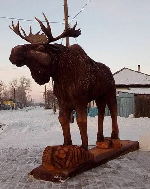 - Это не гипс, не пластик, обычно фигуры в рост человека, а то и в два. Самое сложное, когда фигуру надо сделать из нескольких бревен, а потом их составить, подогнать, чтобы смотрелось как одно целое. Таким был, например, лось в натуральный рост. Интересно, что дерево тоже диктует свои правила. Бывает, что снаружи все цело, начинаешь работать - а внутри дупло или встречаются затянутые внутрь гвозди, куски проволоки, арматуры. Я же использую очень старые деревья, которые многое повидали на своем веку.