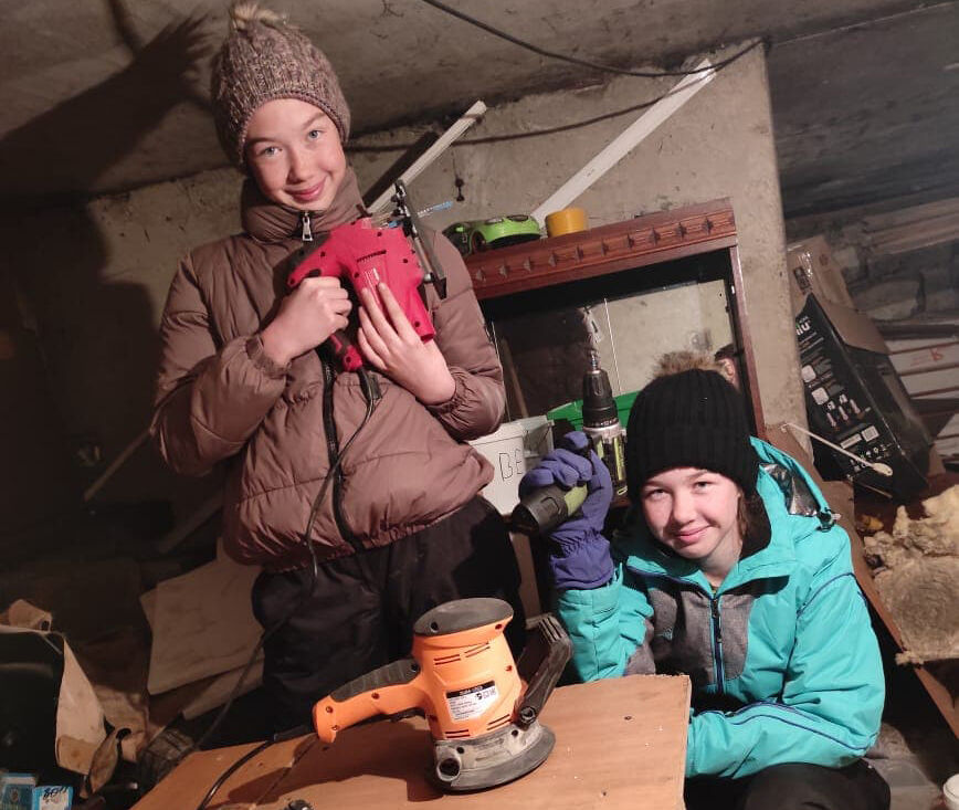 Четырнадцатилетние Кристина и Элина КАРИМОВЫ в свободное время мастерят будки для собачьих приютов.