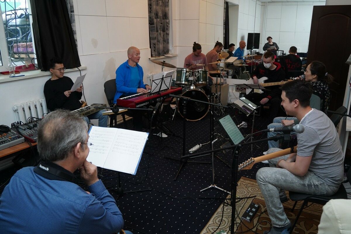 “Золотой квадрат” уже окутан тайнами, но нам удалось попасть в репетиционный зал, где музыканты во главе с джазменом Виктором ХОМЕНКОВЫМ колдовали над хитами нашего города, звучала пронзительная и совершенно не узнаваемая в новом прочтении песня Батырхана ШУКЕНОВА “Дождь”. Уже потом, во время перерыва, ее исполнительница Диана МАКИНА переживала, что поклонники певца будут против такого явного преображения хита.