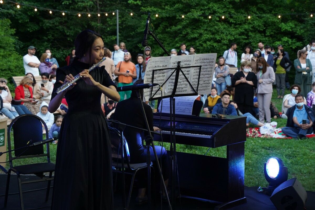 Желающих послушать концерт, посвященный Батырхану Шукенову, собралось так много, что ведущие в самом начале вечера попросили публику надеть маски и соблюдать дистанцию, чтобы такого рода встречи могли продолжаться и дальше. Публика со вздохом подчинилась. Напомним, в мае это уже пятый музыкальный вечер в Ботаническом саду! Курирует проект и лично представляет музыкантов известная пианистка Жания АУБАКИРОВА.