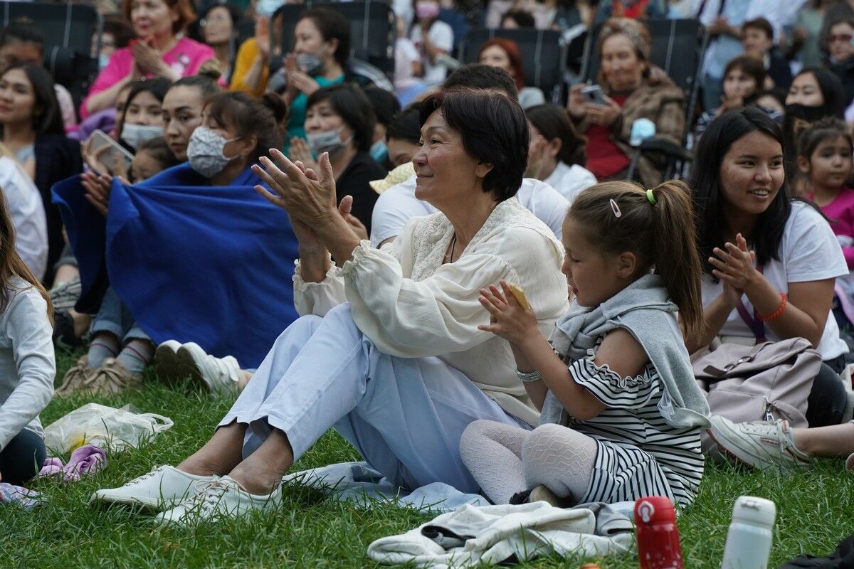 Отдельным шоу стали сами зрители: дамы в шелковых концертных нарядах и бодрые бабушки с палками для скандинавской ходьбы, парочки и целые семьи, собравшиеся, как на пикник. В этот майский вечер стало особенно заметно, как алматинцы соскучились по фестивалям и праздникам. Подобные опенэйры - это самый любимый наш формат. Только представьте, на концерт под открытым небом можно прийти всей семьей, расположиться прямо на травке, открыть корзинку с провизией и напитками, обувь снять и поставить рядом. Это вам не чопорная атмосфера филармонического зала. Ноги можно размять, прогуливаясь прямо во время концерта. Еще можно сколько угодно снимать происходящее на телефон, и никто не сделает вам замечание.